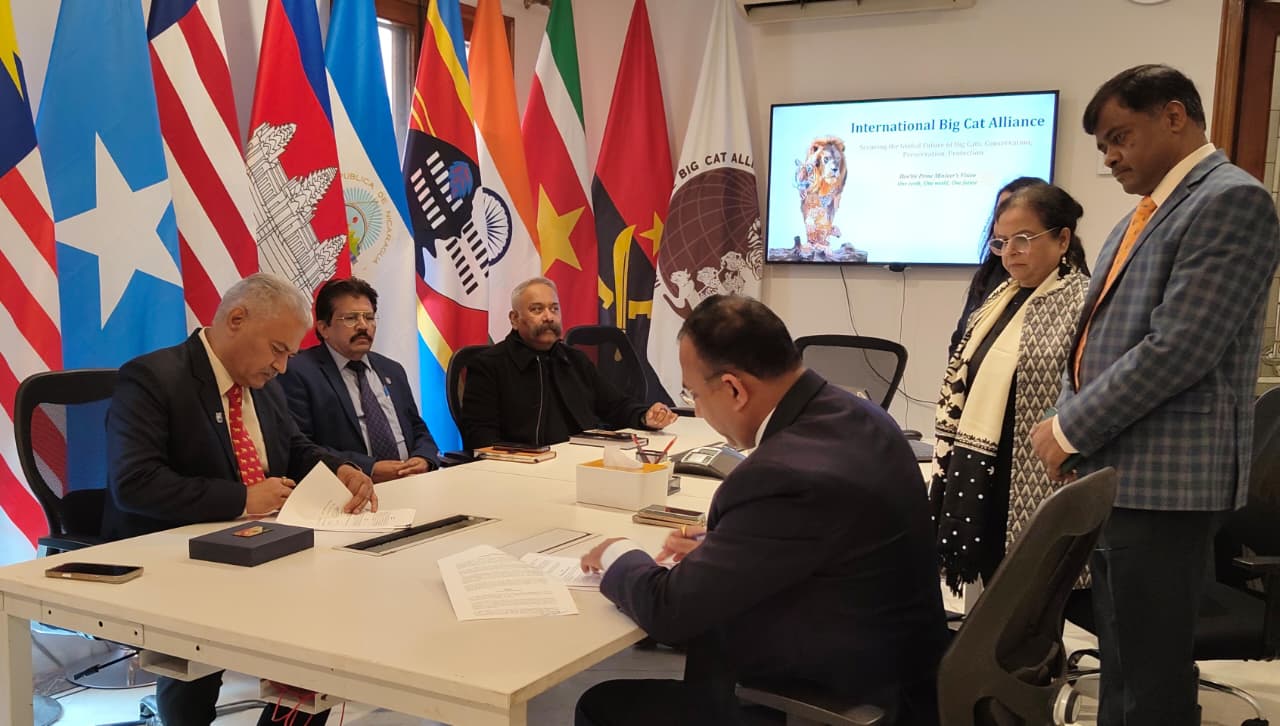 IBCA and the Greens Zoological, Rescue and Rehabilitation Centre Society (GZRRCS), Jamnagar, entered into a Memorandum of Understanding today to strengthen institutional cooperation for Big Cat conservation. The MoU provides a framework for collaboration in knowledge exchange, capacity-building programmes, awareness generation, strengthening of transboundary partnerships, joint initiatives for habitat restoration, rewilding, etc to advance sustainable conservation efforts for Big Cats conservation.